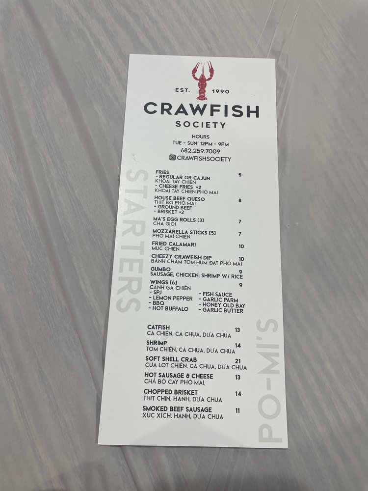 Welcome to CRAWFISH SOCIETY, a delightful culinary escape nestled in the heart of Arlington, Texas. This unique brand offers an enticing fusion of Asian and Cajun/Creole flavors, with a focus on fresh seafood. Located in the bustling Ben Thanh Plaza food court, it promises a savory adventure waiting to be discovered.